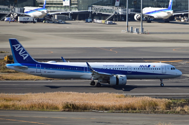 ANAは小型機としてはボーイングの737系とエアバスのA320系の両方を使用しており、エアバスのA321の着陸シーンです。シリーズとしてはceoと呼ばれる新しいエンジンシリーズを搭載していて、P&HかCFMインターナショナルのエンジンのようです。