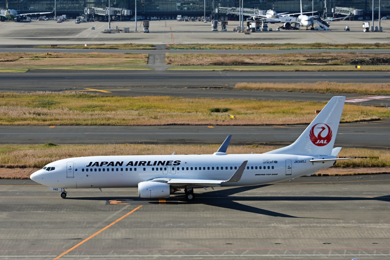 JALの737が誘導路を移動中。C滑走路からの離陸(34R)の様で北に向かう便でしょう。