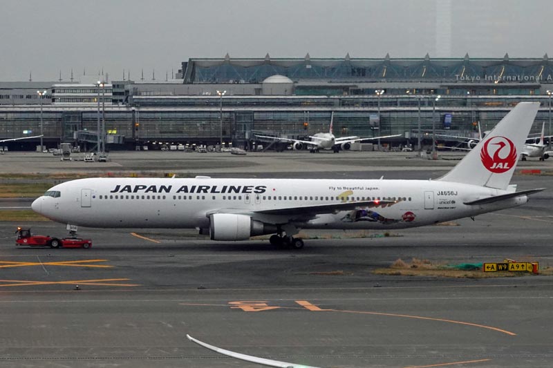 縄文時代から現代まで続く「日本の美」を発進するプロジェクト「日本博」の特別塗装機で8つの分野をデザインしています。 JALラウンジから目の前の誘導路を移動する所を撮影しました。