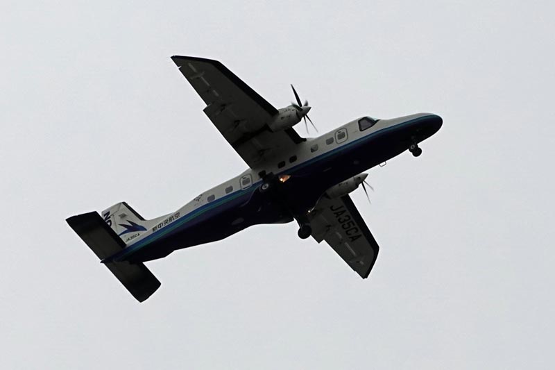 自転車でトレーニング中に府中近辺で飛行している新中央航空のドルニエで足が出てフラップが下がっているので調布飛行場へ着陸態勢のようです。
