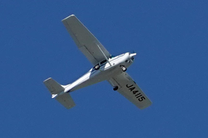 サイクリングロードを走っている時に比較的低高度でターンしていました。朝日航空の機材でチャーターで航空写真撮影などを行っている会社です。