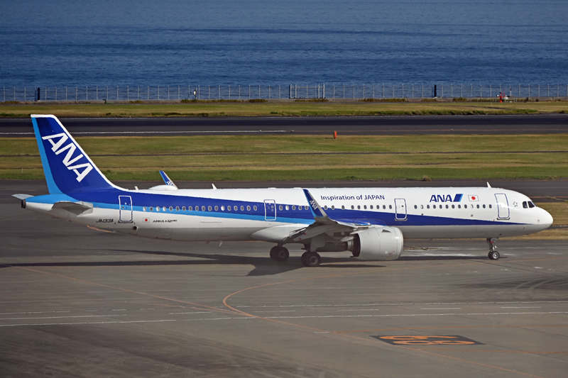 ANAのエアバス小型機が離陸に向けてエプロン前を移動していきます。