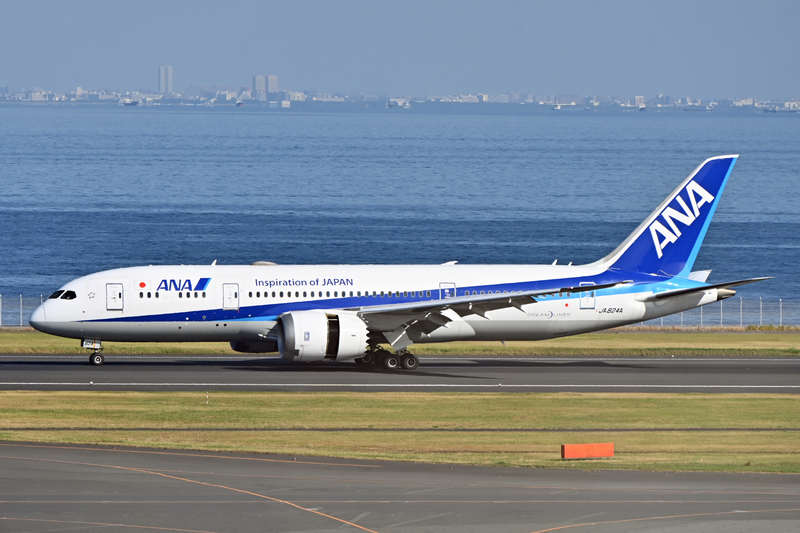 ANAのチュが滝の787が羽田空港のC滑走路に着陸して逆噴射をしています。