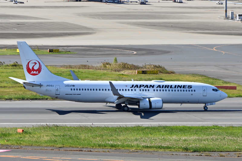 JALの地方路線の主力の小型ジェットの737-800がA滑走路に着陸してきました