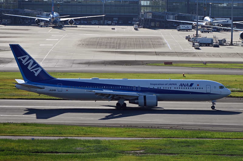 ANAの中型ジェットの767がA滑走路に着陸してきました