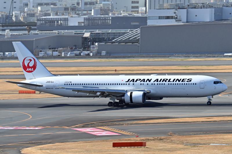 JALの中型機の767が羽田のA滑走路に着陸してきました