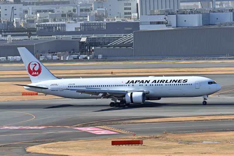 JALの中型機の767が羽田のA滑走路に着陸してきました