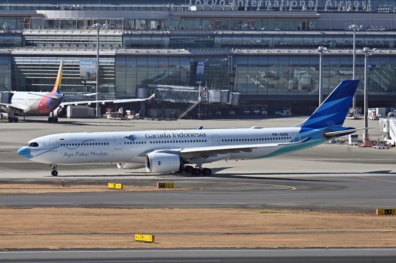 ガルーダインドネシア航空のエアバス機で先頭の色と紐が見えると思いますが、インドネシア政府の「マスク着用キャンペーン」の認知向上の特別塗装機の1号機です。期待にも「マスクを着けよう」の「Ayo Pakai Masker」の文字も書かれています