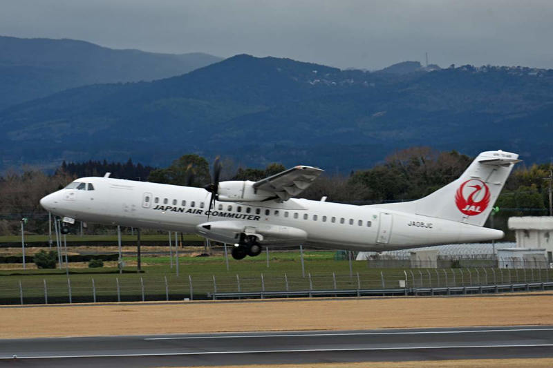 鹿児島空港の展望デッキから日本エアーコミュータのATRの離陸を撮影しました。JACは小型のATR42と大きいATR72の両方を使用していますが、これは胴体が長いATR72です