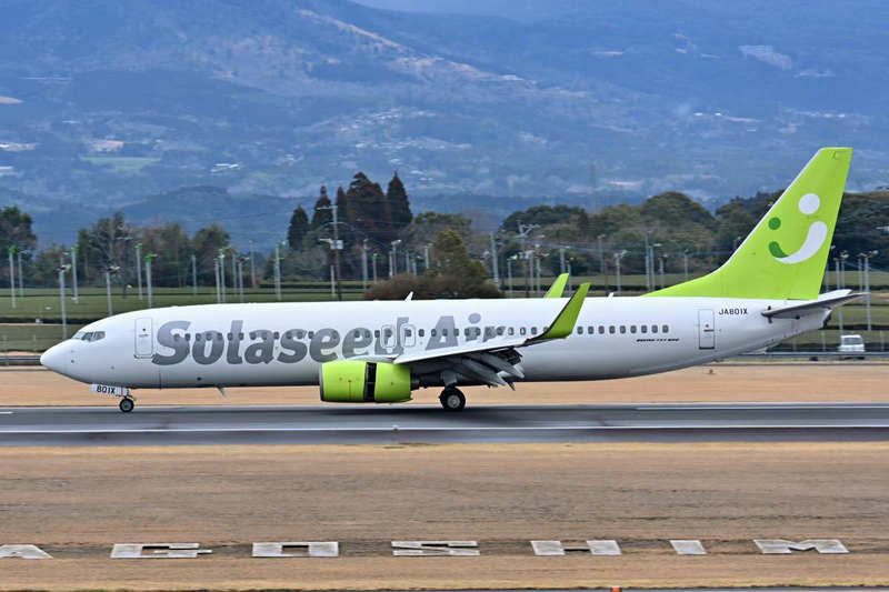 鹿児島空港で乗り継ぎ待ちの間に展望デッキで着陸してきたソラシドの機材を撮影しました