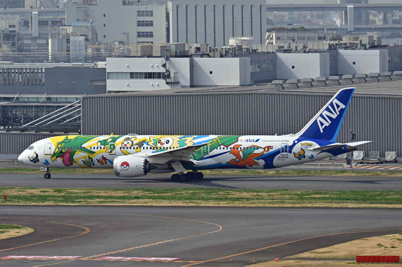 ANAのポケモンジェットが国際線ターミナルから移動していきます