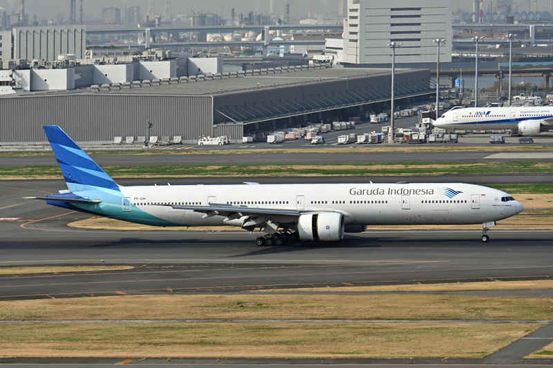 ガルーダインドネシア航空のトリプルセブンが羽田空港のA滑走路に着陸してきました