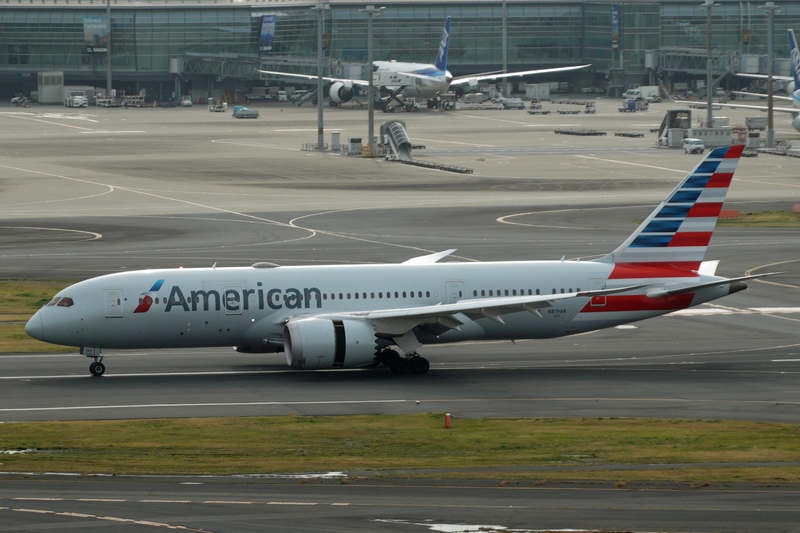 羽田空港の南風時の都心上空ルートでA滑走路に着陸してきたアメリカン航空の787です。長距離路線ですが787の一番小型のダッシュ8です