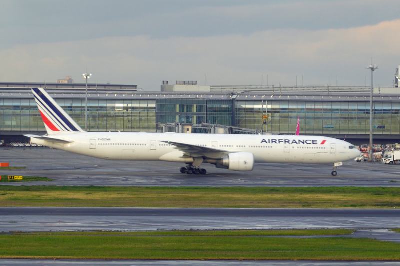 羽田空港のJALラウンジで休憩しているときにエールフランスの機材が誘導路をT3に向かって移動してきました