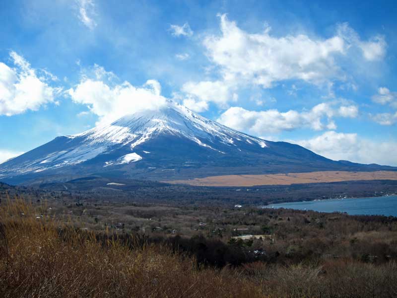 パノラマ台からは富士山と山中湖のコラボが撮影できるので車で上がってきました。まだ山頂に雲が架かっているのが残念です。富士山の右側の茶色い部分は陸上自衛隊の富士演習場です。