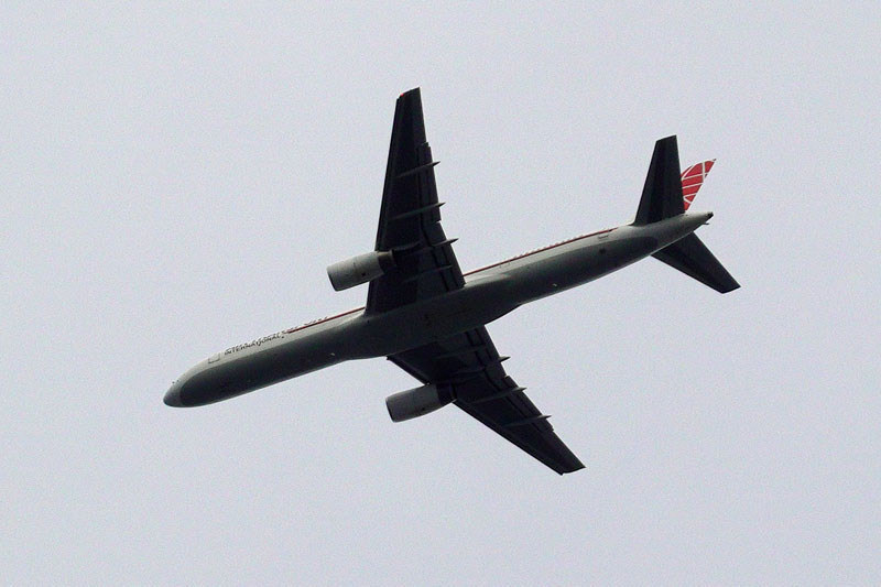 町田市内で頭上を通過するATiの757です。ボーイングの757は日本の航空会社では使われていないのでレアです