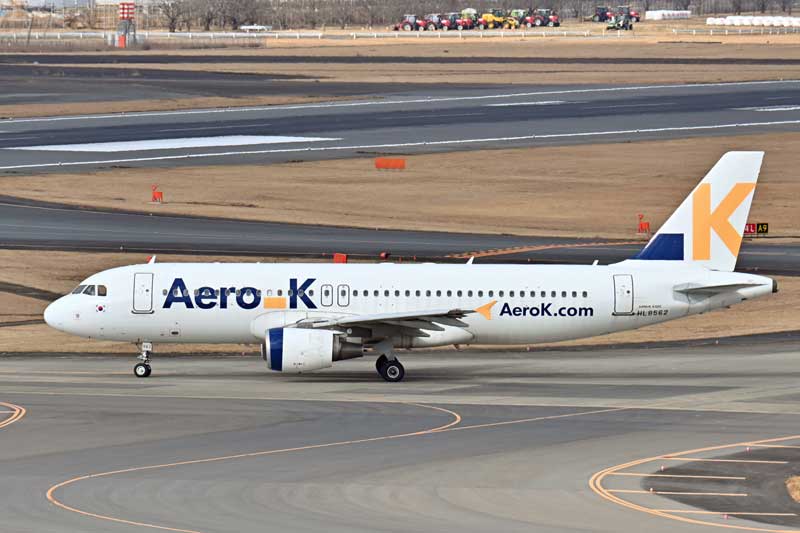 韓国のLCCのエアロ・Kの機材が成田空港の34Lに向かって移動中を撮影しました