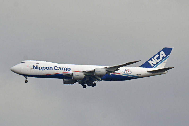 日本貨物航空のジャンボが成田空港に着陸するために降下中の写真です。日本貨物航空が設立されてから40周年なので記念のロゴが入っています。親会社が日本郵船から全日空に変わったのでANA Cargoを含め今後が気になります