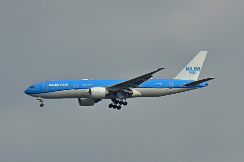 KLMのトリプルセブンでアムステルダムから成田への便です。アジア路線に充当する機材なのかKLM ASIAと書かれています
