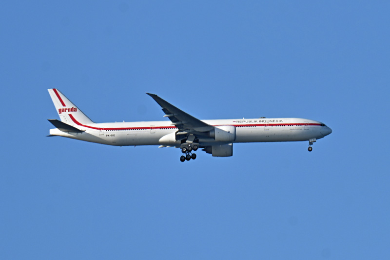 インドネシアの政府専用機が羽田空港に着陸していくところを撮影しました。普通は政府専用=本当に政府の用務ですがインドネシアのは政府が使用しないときにはガルーダインドネシア航空が定期便として使用しています。この時もジャカルタから羽田への定期便として飛来しました
