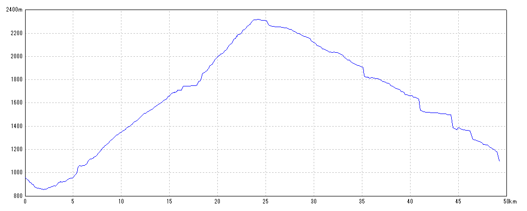 カーブを曲がったら等高線と平行に道がつけられていて平坦に近く少し楽に走れます。