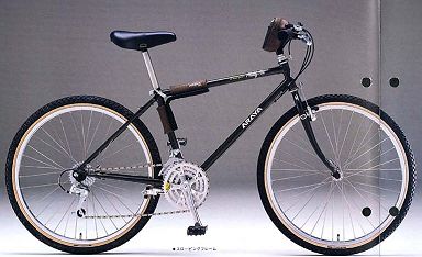 【初代 MTB】 メーカー:アラヤ 型名 :マッディフォックス(MF26-EXP-F アガトグリーン) 1987年にBe-PALという雑誌で『山を走る自転車』と言う事で紹介されていて「かっこいい!」と思い立ち購入を考えていたがなかなか入手する事が出来なかった。 88年5月に横浜に遊びに行きクレイトンというアウトドアショップにおいてあるのを発見し、思わず衝動買いしてしまった。 近所の山や河原を走ったりしたが、会社への通勤にも使い始めたところ夜の帰りにダンプに幅寄せされ怖い思いをしてからコンビに買い物自転車になっていた。 そのうち乗る頻度も少なくなり錆が目立ち廃車となった。 写真を撮っていなかったのは悔やまれるがARAYAのHPにカタログが登録されており手元に残っていた保証書の型名より画像を入手することができた。 |