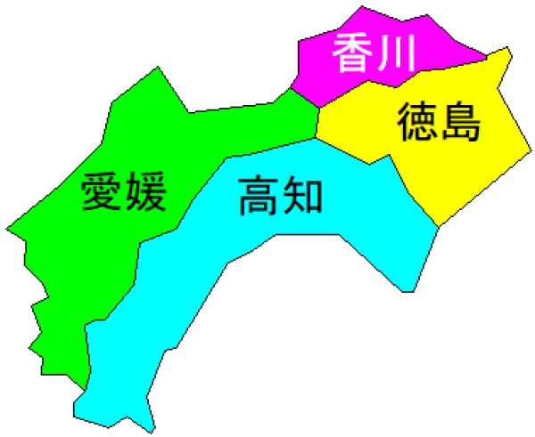 四国は『香川』『愛媛』『高知』『徳島』の4県で構成されます。