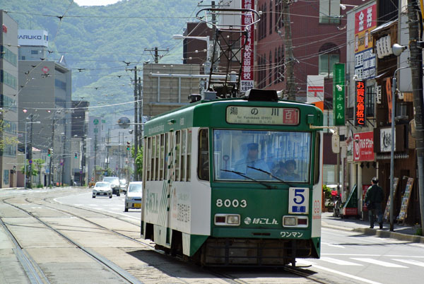 新しい車両で「はこしん」と書かれていて、函館信用金庫のラッピングです