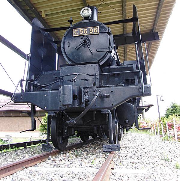 正面からおなかなか迫力がありますが、D51や9600型と比べると小型の印象があります。 この96号車は。日本車両製造で1937年に作られたもので、野辺山駅近くの歴史民族自然公園の保存されています。