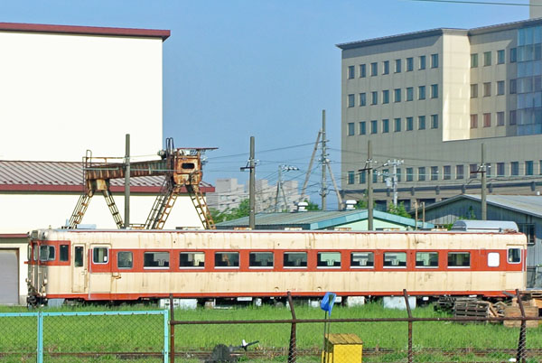 キハ56型は北海道の寒冷地仕様になった急行形の気動車ですべて引退しています。 函館から出発するときに左手のほうに1両置かれているのを確認できます。