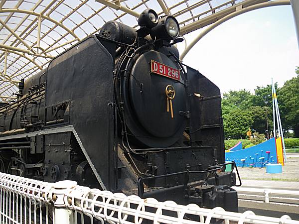 府中市民健康センターの交通公園にはいくつかの保存車両があります。 その中の1両がこのD51型蒸気機関車で、この写真では見えませんがテンダー型で後ろに石炭を積む貨車があります。 全部で1182両が作られ、この296号は川崎車両で製造されました。