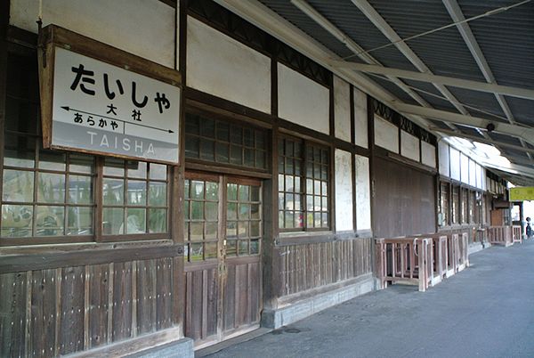 ホームから見た駅舎も木造のいい感じで、駅名表示板も木造です。