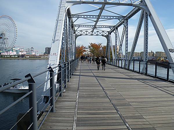 昔の路線が遊歩道になっていて、みなとみらいから山下公園まで続いています。 ここは港一号橋梁で明治42年に鉄道院によって架設されたものです。 廃線になった後にみなとみらいが出来る前の横浜博覧会に一度復活したことがあります。