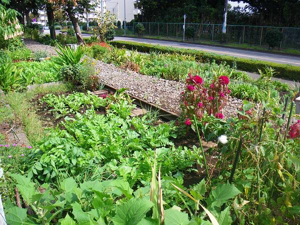 上矢部団地のところは線路や枕木が残っていますが、花壇や日曜菜園に利用されています。
