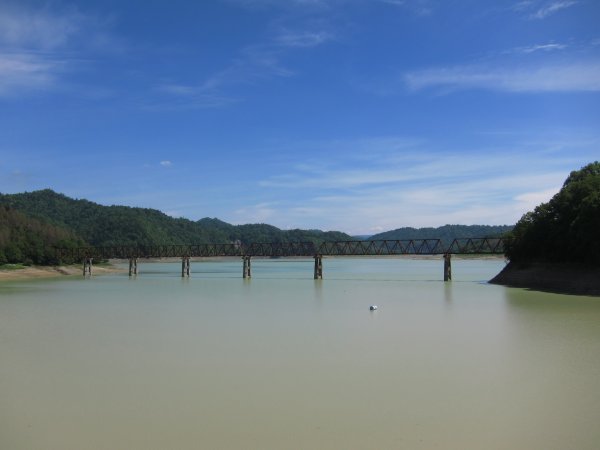 大夕張ダムの下に建設中の大夕張ダムが出来ると水没してしまいますが、タウシュベツ橋と違って鉄橋なので残ることはないでしょう。