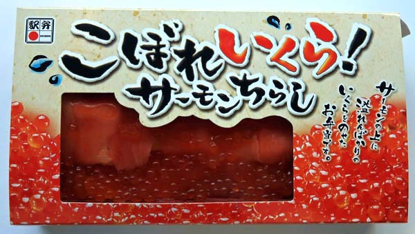 町田市内のスーパーで購入したお弁当です。駅弁マークがついているので実際に駅で売られているようですが現地ではどうなっているのか不明です。サーモンにいくらがどっさり乗っているお弁当でした。