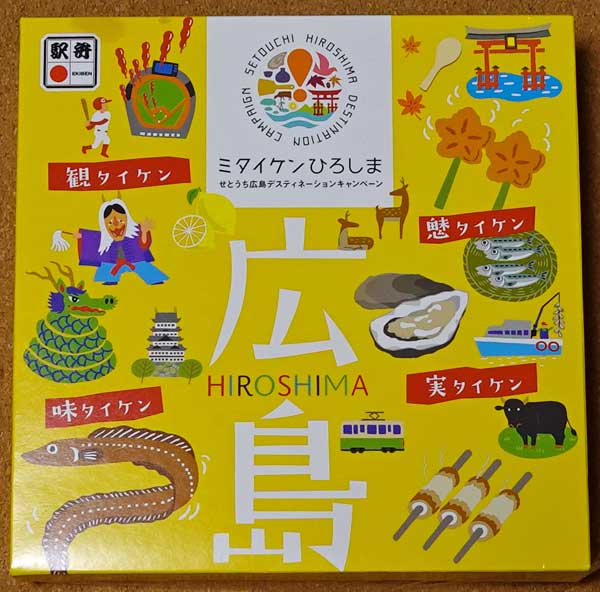 せとうち広島デスティネーションキャンペーンのお弁当という事で特産品がたくさん入っています。 もみじ饅頭の天婦羅が入っていて気が付かずにおかずだと思って食べてあんこの甘さにビックリしました。スーパーの駅弁フェアで購入しました。
