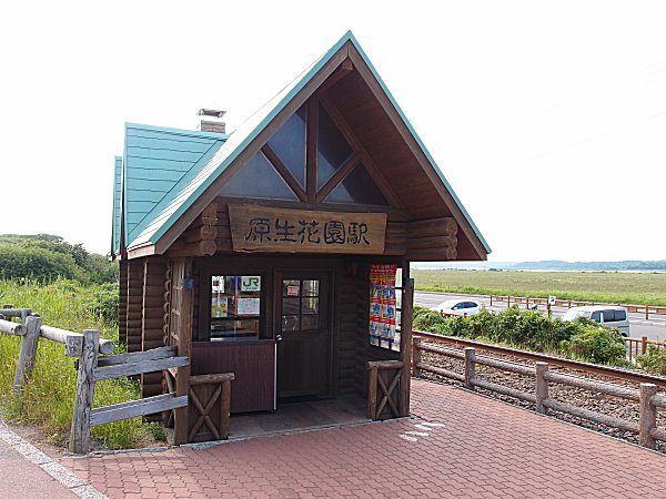 夏の間だけ臨時駅としてオープンする駅ですが、この駅を利用しての原生花園の観光は少ないでしょうね。 ほとんどの人が車かバスでの観光になると思います。 朝の早い時間だったので人の写っていない写真が撮れました。