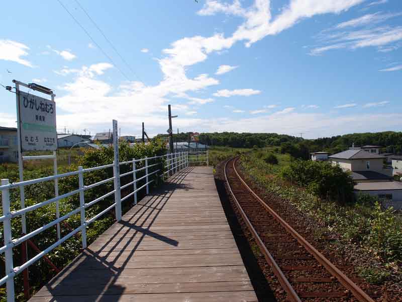 釧路方面を撮影したもので、こちらもカーブした線路が右側(西側)になっているのが確認できます。 ちょうどカーブした一番東側になった場所に駅が設置されているようです。