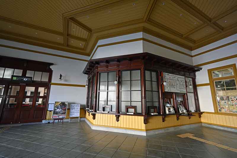 駅構内の切符売り場も古い時代の形に復元され窓口に自販機がうまく埋め込まれていました
