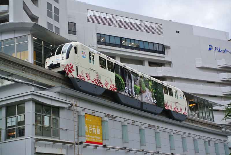 駅の所は少しカーブしているのがわかります。ゆいレールは鉄道ですがモノレールで速達性より利便性を重視して那覇空港から那覇市内の主要ポイントを縫うようにジグザグにルートが決められています。