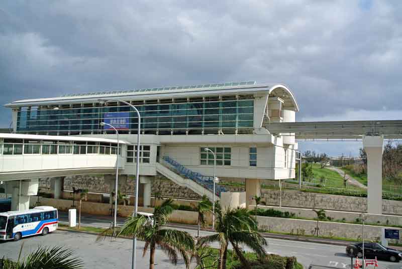 沖縄の唯一の鉄道であるゆいレールの那覇駅です。 那覇空港とは連絡津路でつながっており便利です。 植わっている木などからも南国のイメージがあります。 なお、この駅には日本で最南端の駅になります。