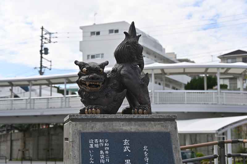 石嶺駅には東西南北にシーサーがあり、これは玄武と名付けられてもので北側を守っています。首里城の北側にあります。