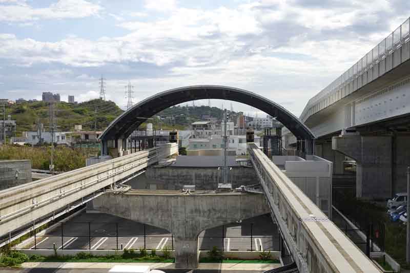 順序は逆になりますがプラットホームから撮影したもので、まだ先へ伸びそうな気もしますしビルなどがあるので終わりのような気もします。先にもドーム状の覆いがあるが何のため?