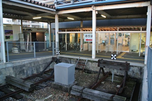 車止めは枕木を重ねたもので、電鉄出雲市駅も同じでした。