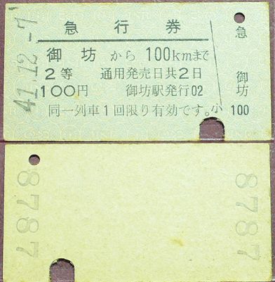 昭和41年12月7日の急行券で、同日の乗車券と一緒なので東和歌山までのものでしょう。