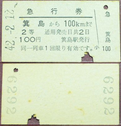 急行券:簑島⇒100km