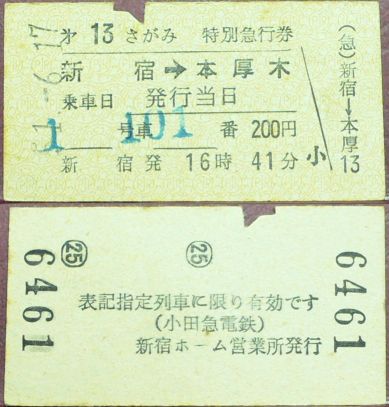 小田急の特急ロマンスカーの指定席特急券で1号101番は展望席のものです。