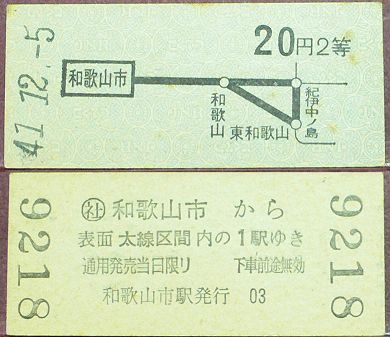 乗車券:和歌山市から20円