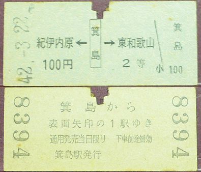 乗車券:箕島⇒100円区間